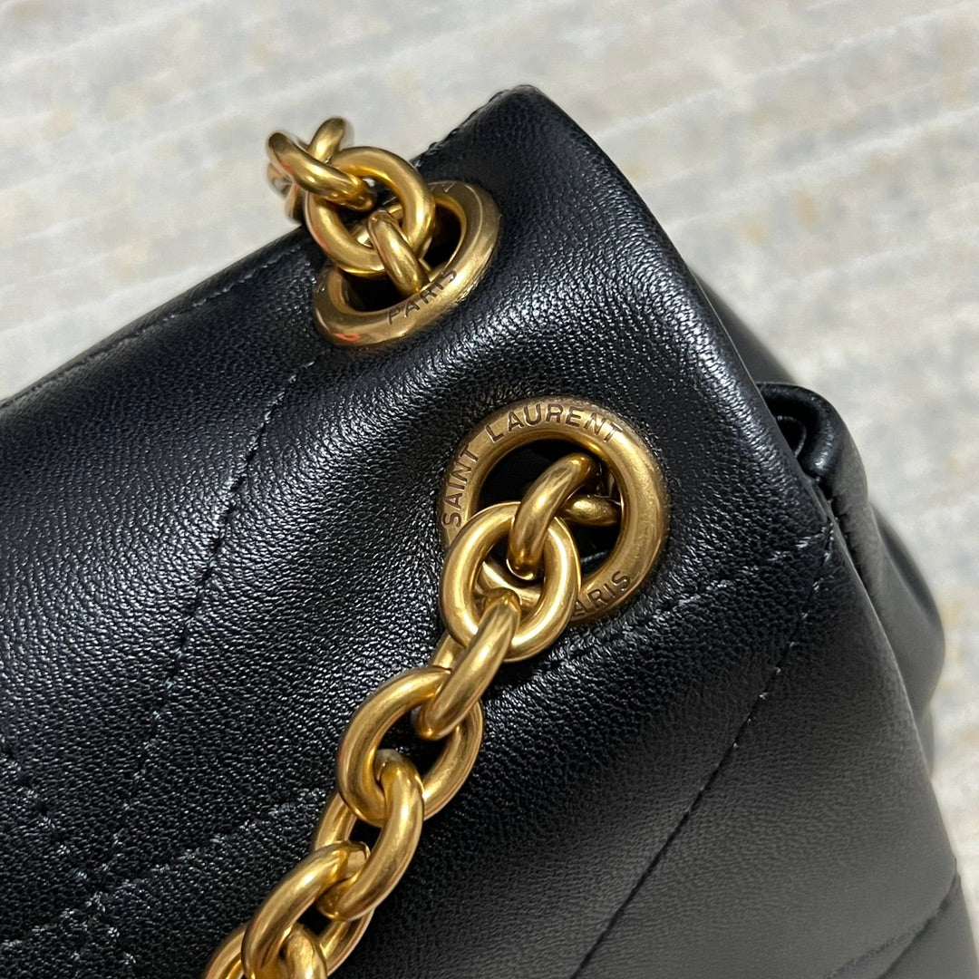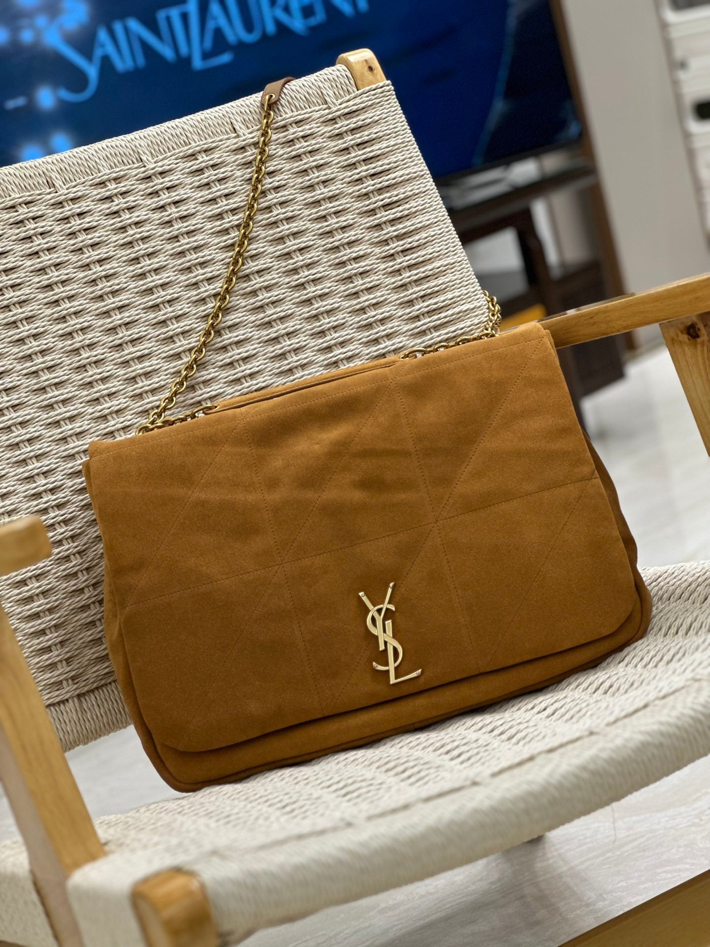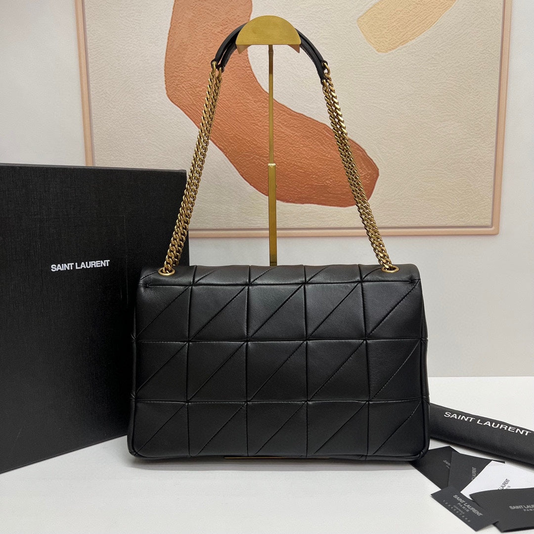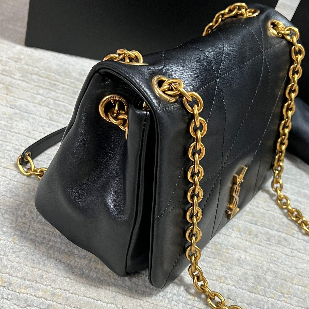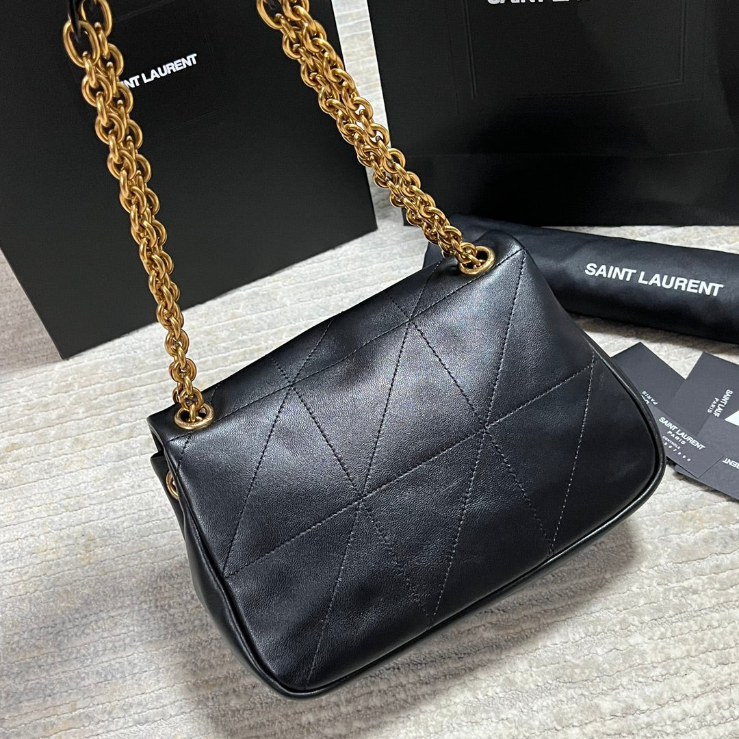 YSL JAMIE patchwork, This bag features a flap with a snap closure, a center compartment, and a chain and leather shoulder strap! Jamie features a Le Maillon chain design and the iconic Left Bank quilting.