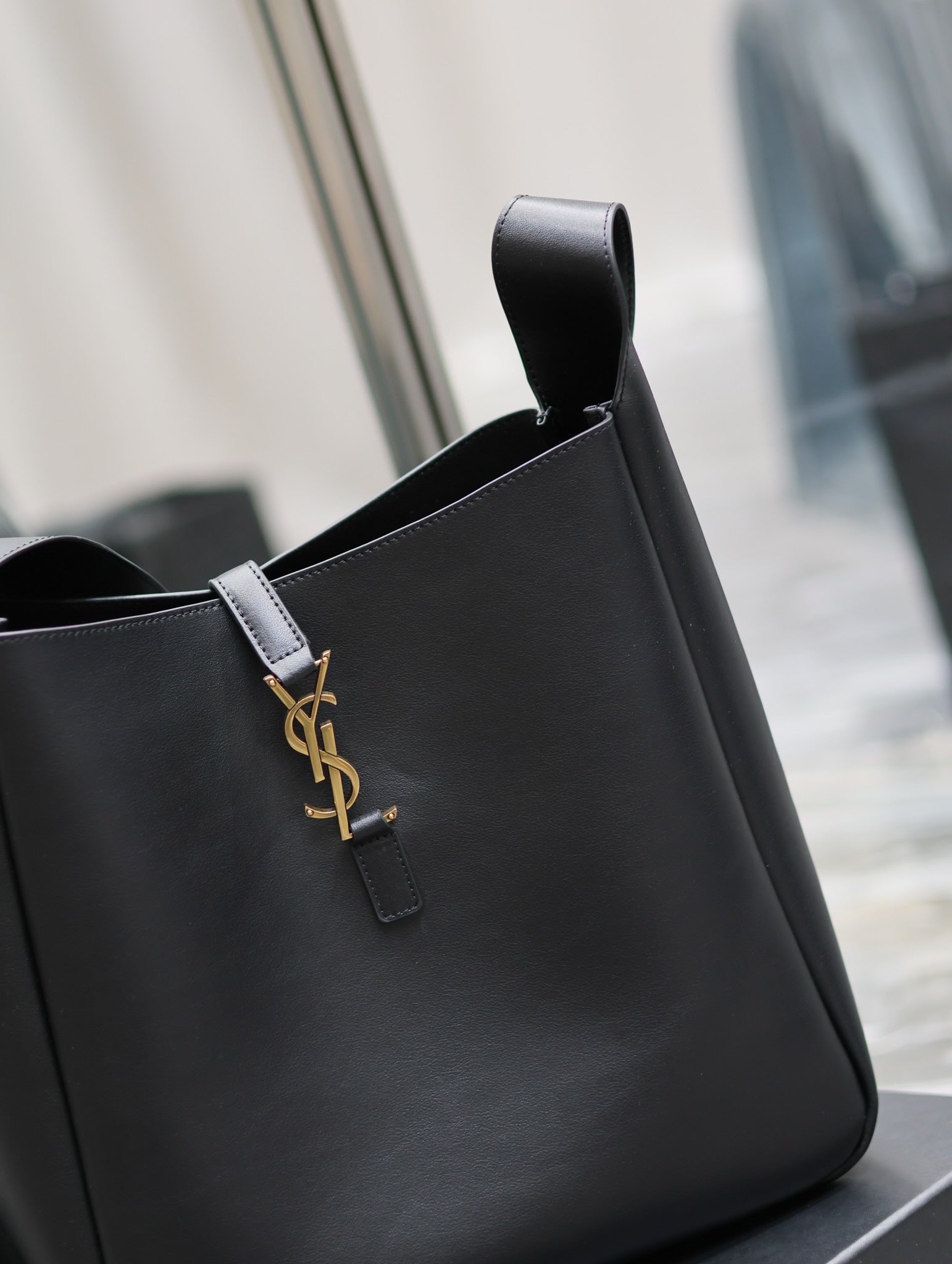 Ysl Saint Laurent LE 5A7 Hobo Bag Vintage Black Leather